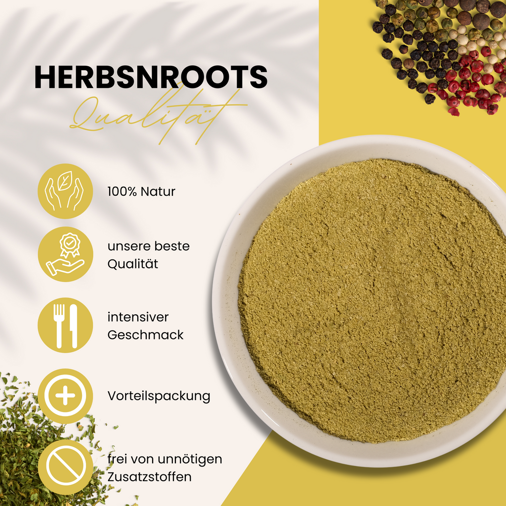Es eignet sich auch hervorragend als Gewürz für marinierte Lebensmittel und als Zutat für Dips und Pestos. Es kann auch als Beilage zu gegrilltem Fleisch, Fisch oder Gemüse serviert werden und verleiht jedem Gericht eine aromatische Note.