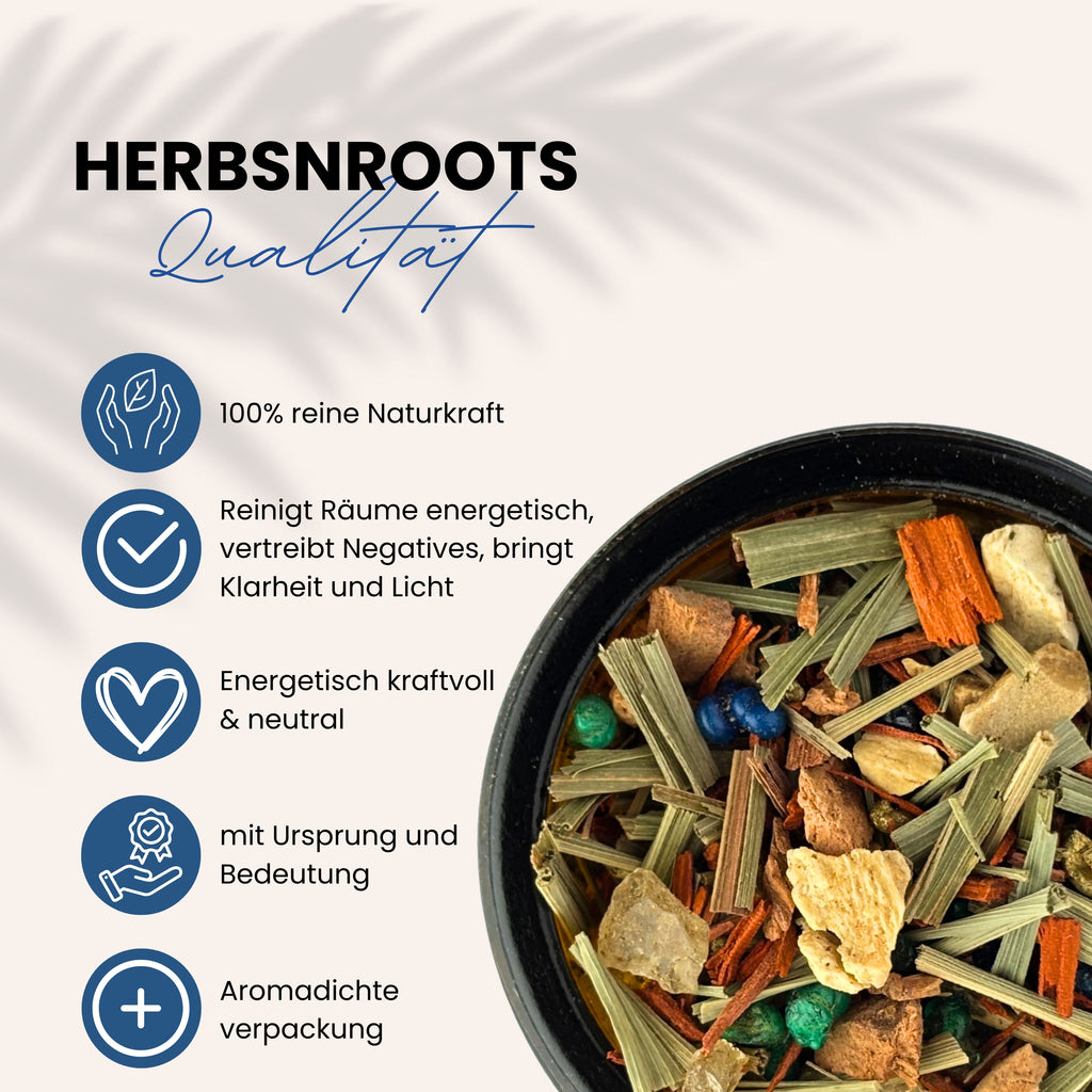 Diese Räuchermischung ist wie eine sanfte Umarmung für deine Wohnräume, eine liebevolle Einladung an positive Energien, um Einzug zu halten.