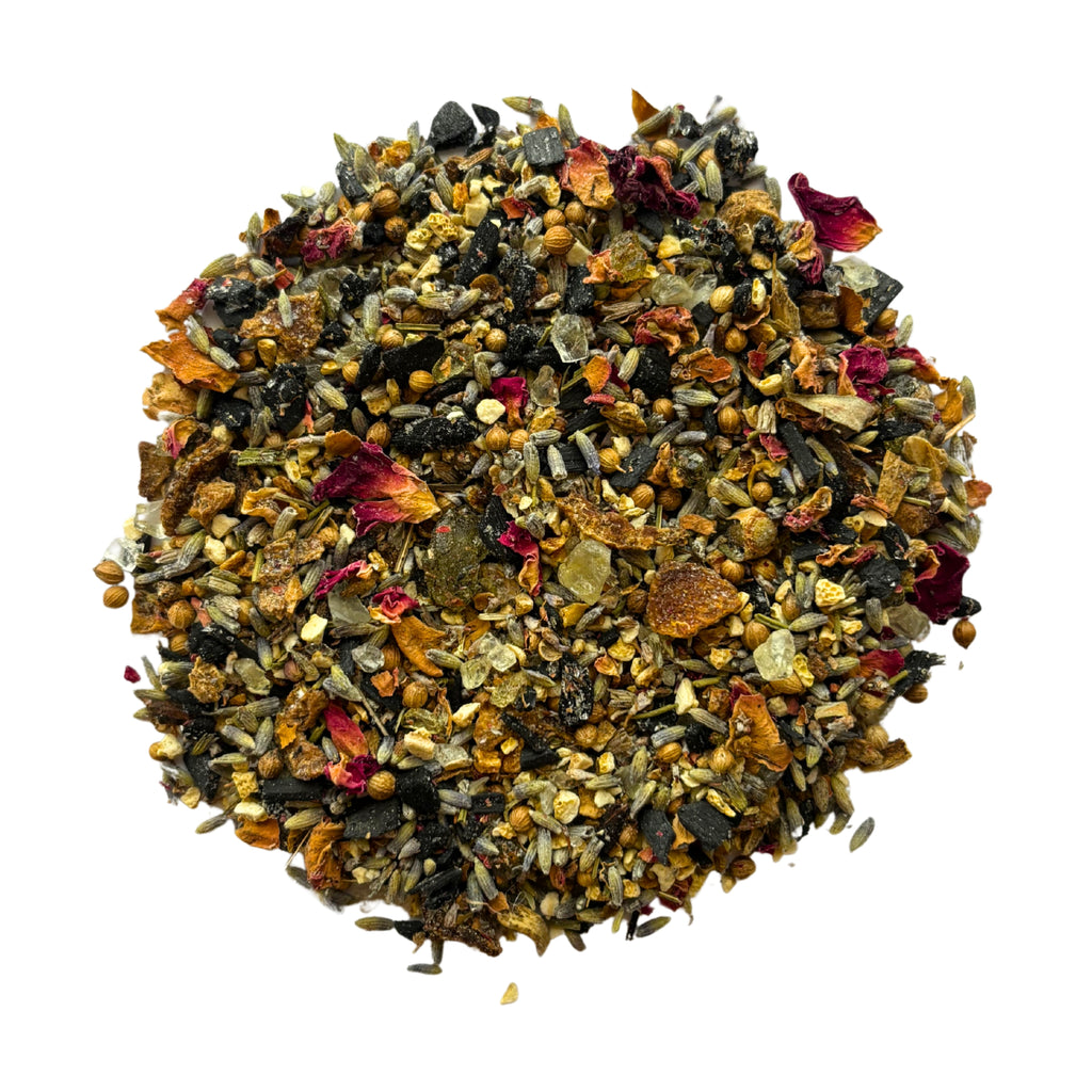 Iriswurzel öffnet das Herz und beruhigt die Seele, Weihrauch Dammar klärt und bringt Licht, Styrax schenkt Tiefe und Geborgenheit, und Zitronenschalen verleihen dem Ganzen eine sanfte Frische und Lebensfreude.